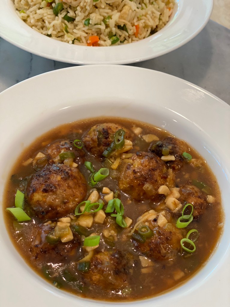 Vegetable Manchurian- One of the most satisfying Asian inspired dishes in India is this very flavorful vegetable balls served with a spicy, salty garlic sauce. Traditionally these are deep fried, but I decided to try a healthy alternative and put these straight into the air fryer for the same crispy deliciousness. Once added to the sauce, it turned out delicious, light and full of flavor! To round the meal out I served this with simple vegetable fried rice. Truly a fun and tasty way to add a lot of vegetables to ones diet.